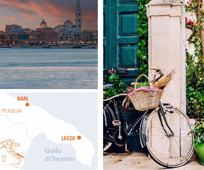Café da manhã no hotel, no hotel, encontro com guia no hotel para começar o tour a pé pela cidade, onde você vai admirar as belezas da capital da Apúlia. Bari ostenta a presença da Basílica de San Nicola, exemplo da arquitetura romanesca da Apúlia. Esta igreja é um dos lugares de culto mais importantes do mundo, onde os cultos católicos e ortodoxos se misturam. Bari Vecchia ou o centro histórico tem uma característica bem marcante, uma viagem no tempo: todos os dias as mulheres ficam sentadas fora de suas casas, preparando as típicas orecchiette (massa local), crianças brincando na rua, roupas penduradas ao sol e a simpatia típica dos habitantes de Bari compõem este cenário. E a focaccia barese? É difícil resistir ao cheiro. Não se preocupe! Você vai prová-la! Restante do dia livre. Hospedagem.